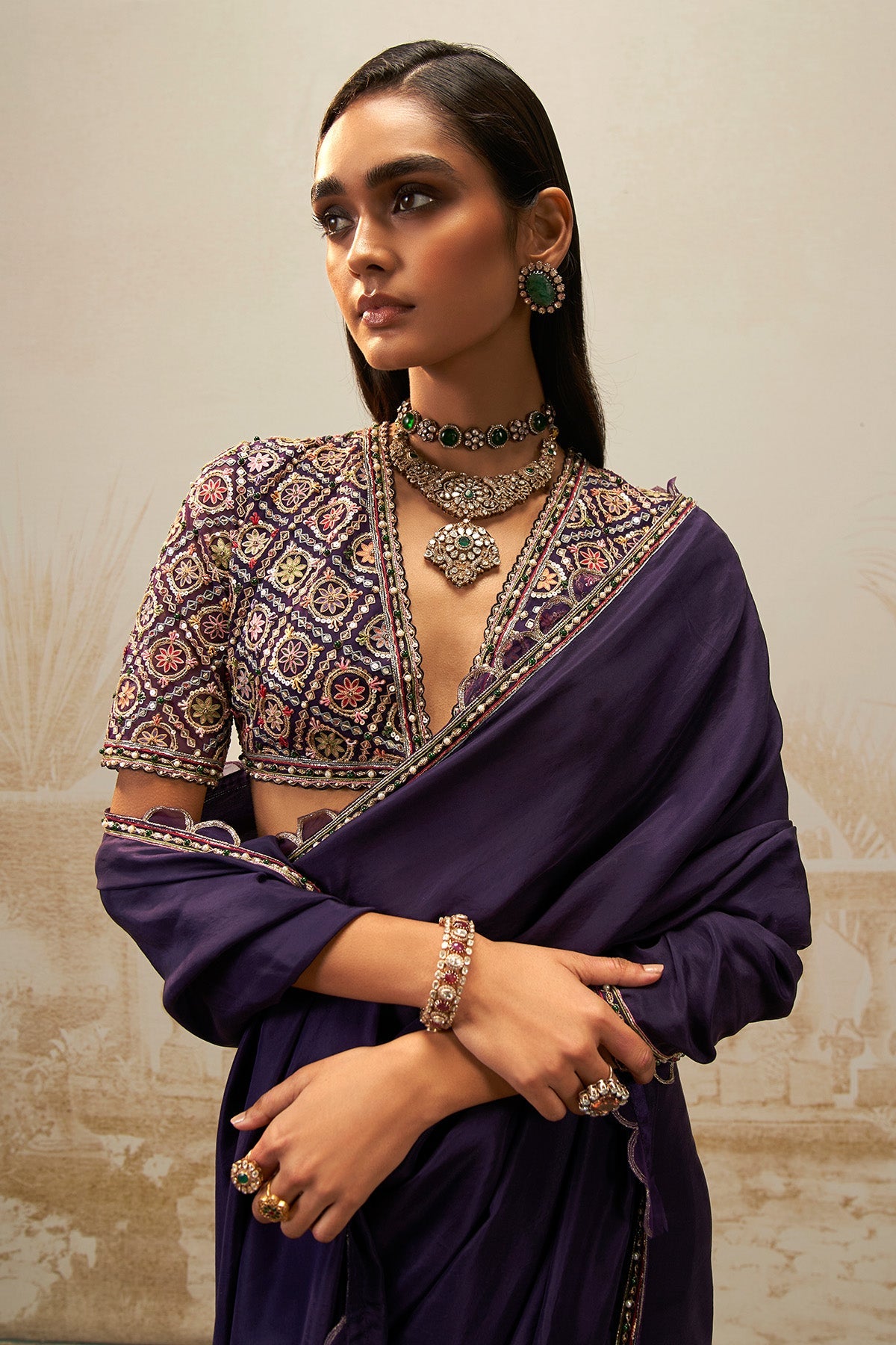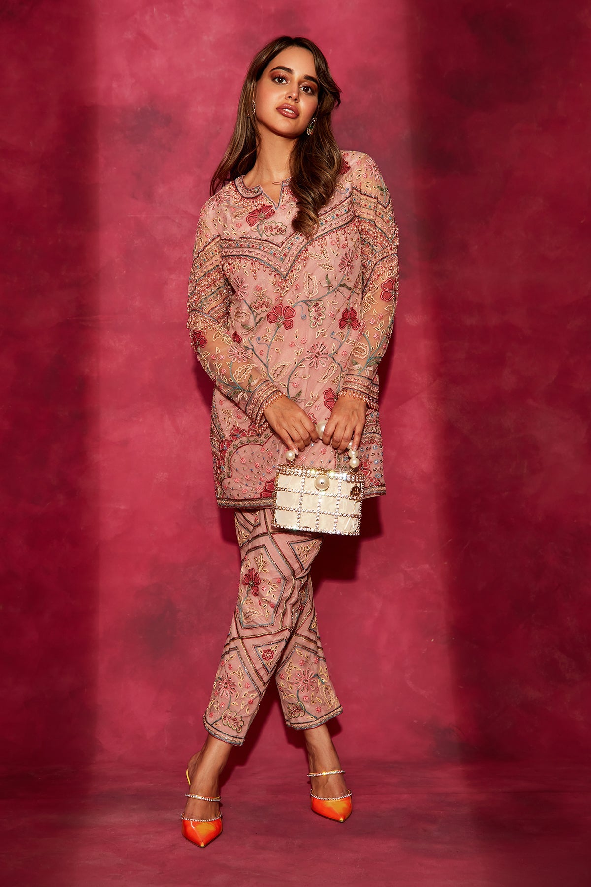 Raw Silk Embroidered Jacket And Tissue Kurta Paired With Embroidered Raw Silk Flared Pants
