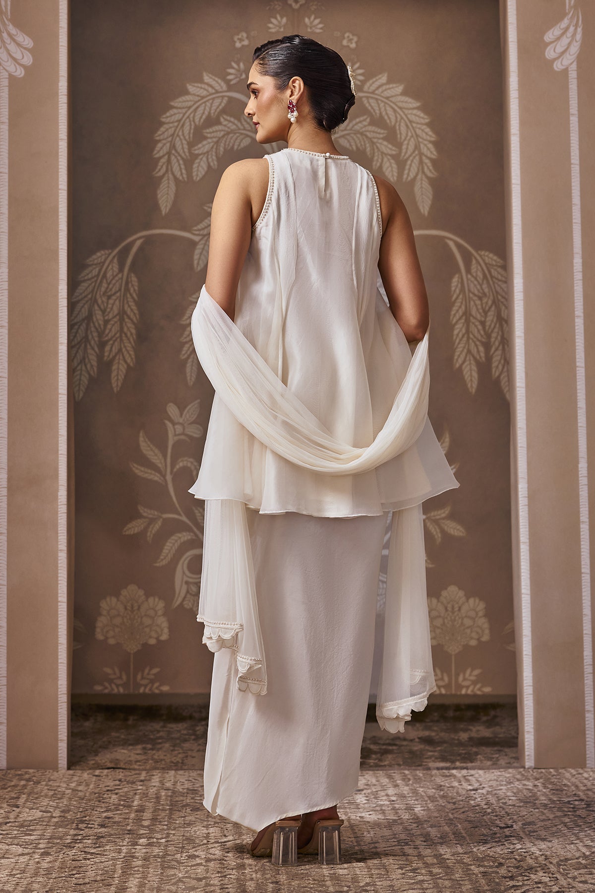 Chiffon / Organza Embroidered Short Kurti With Silk Draped Skirt And Net Embroidered Dupatta