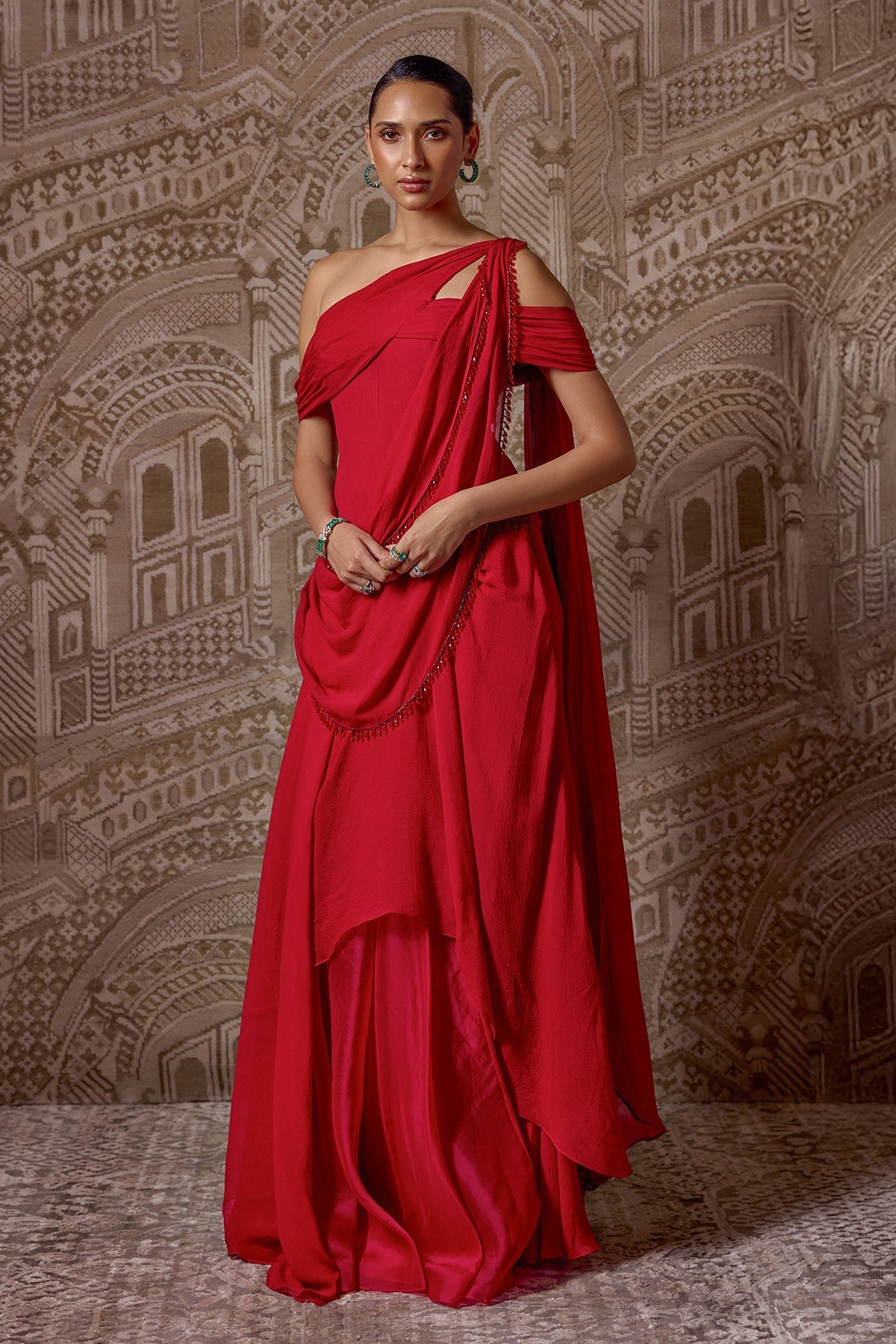 Chiffon Drape Corset And Pre Draped Saree With Embroidery Detailing