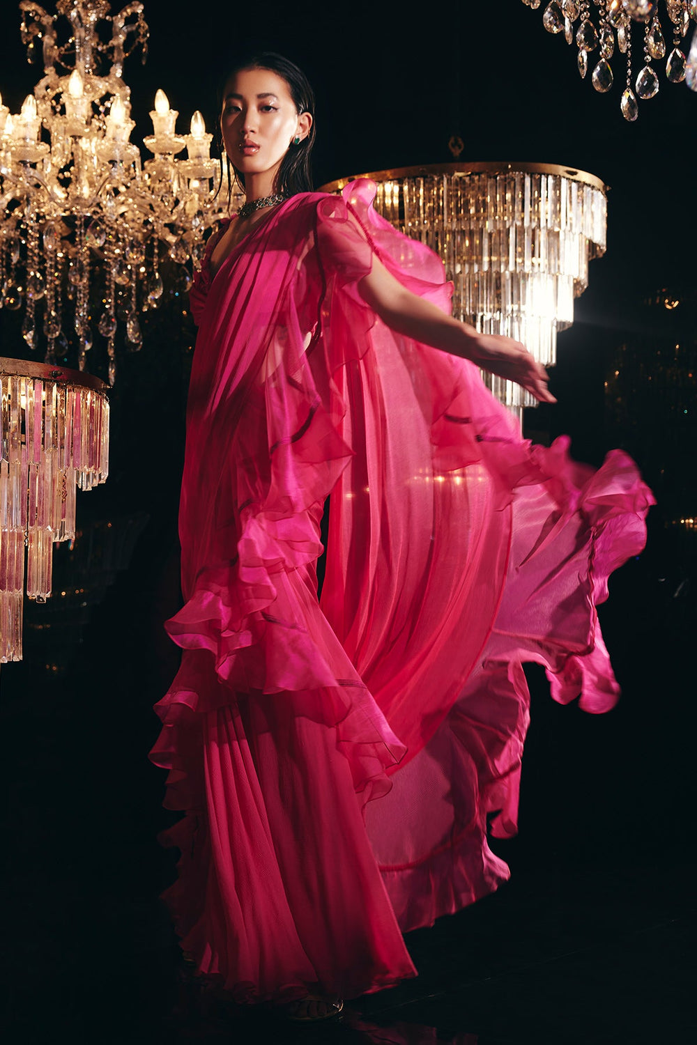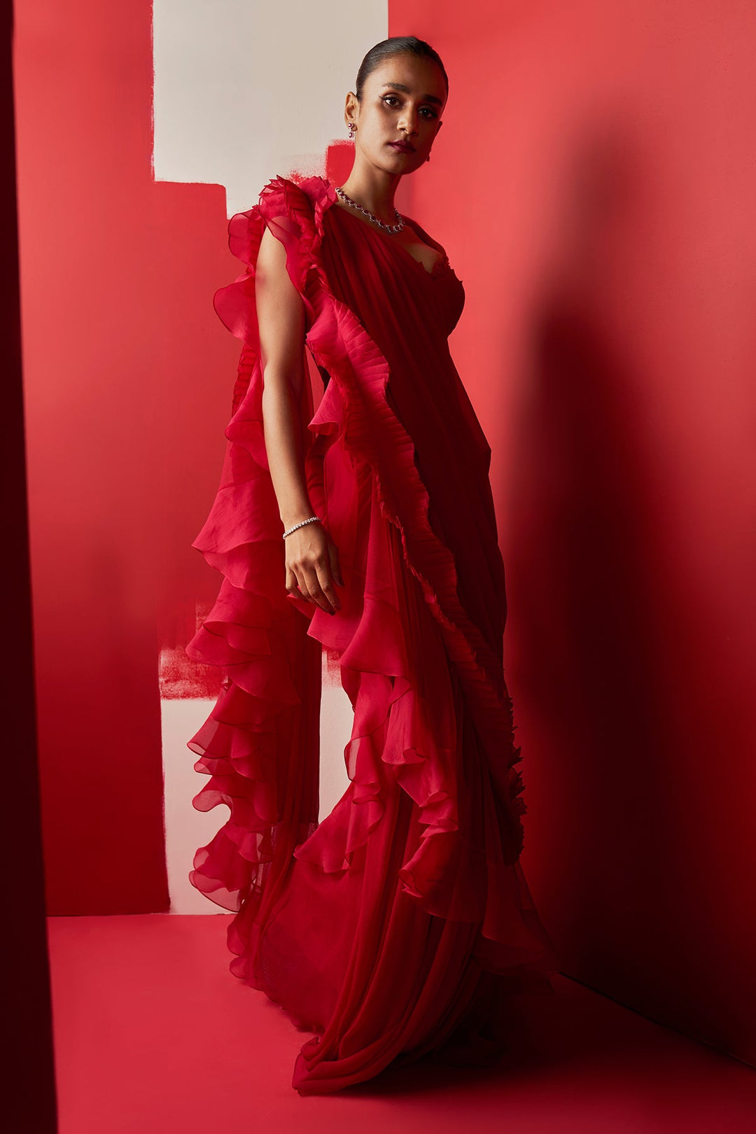 Sneh Ruffle Saree Set-RTS