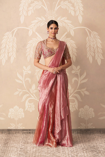 Net/ Tissue Embroidered Blouse With Tissue Draped Stitched Saree