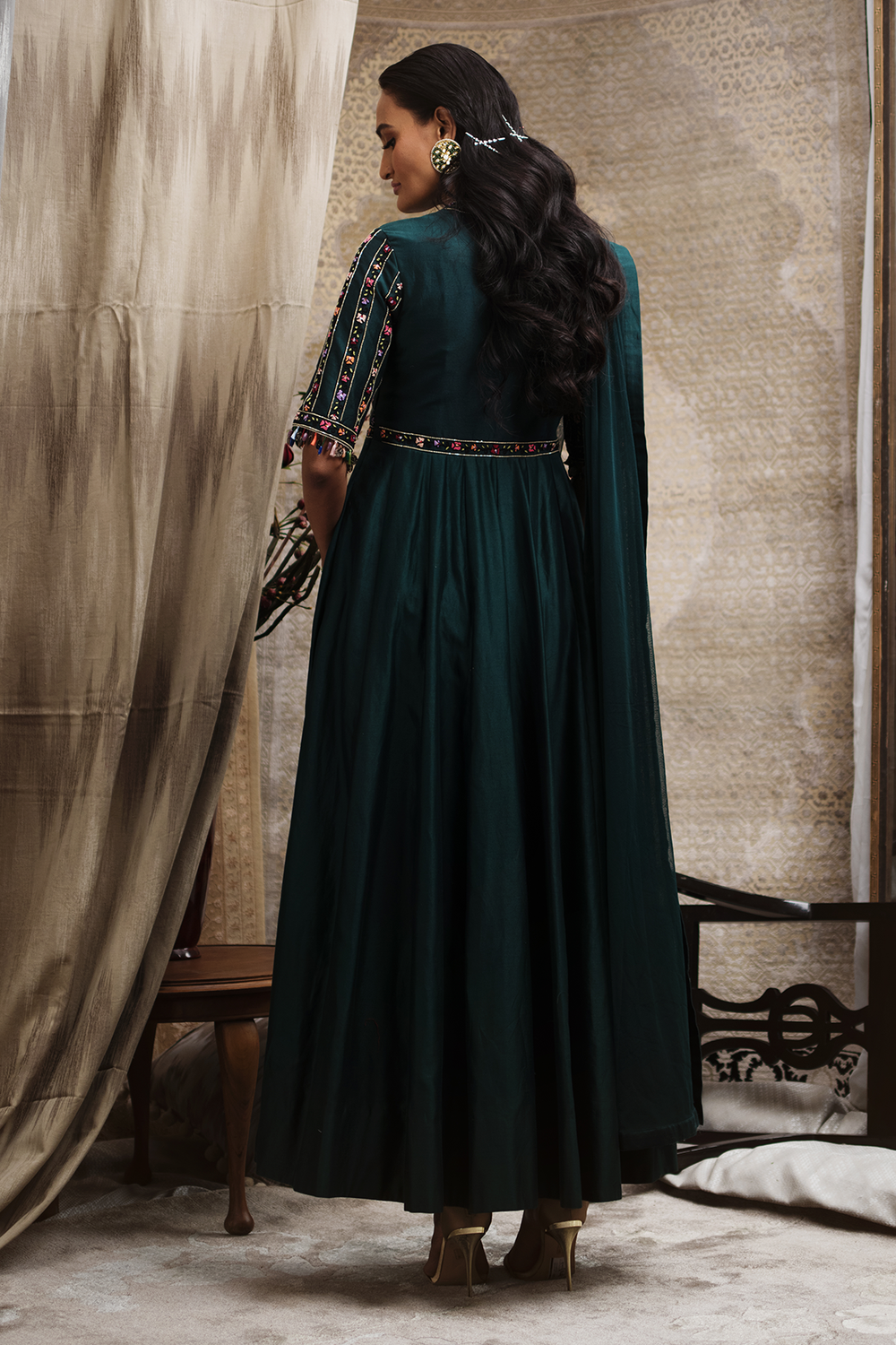 Chanderi Anarkali with Churidar and Net Dupatta