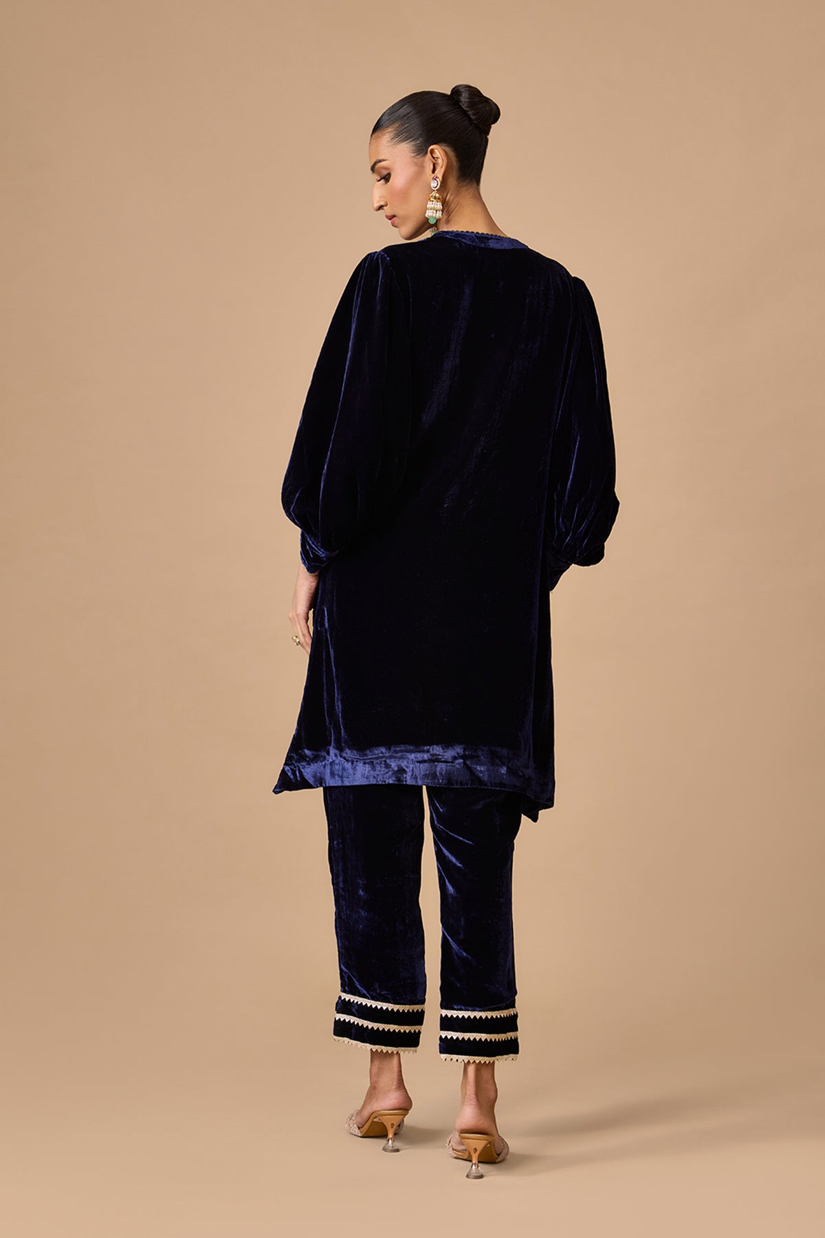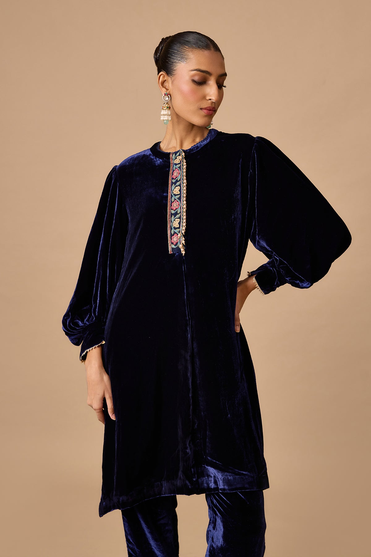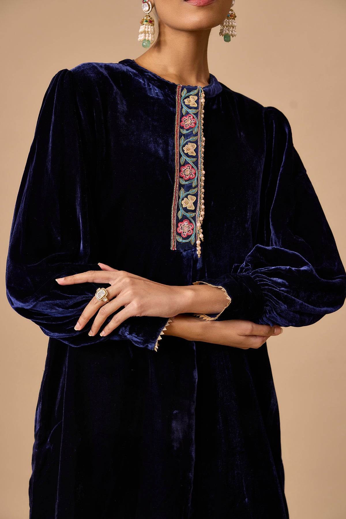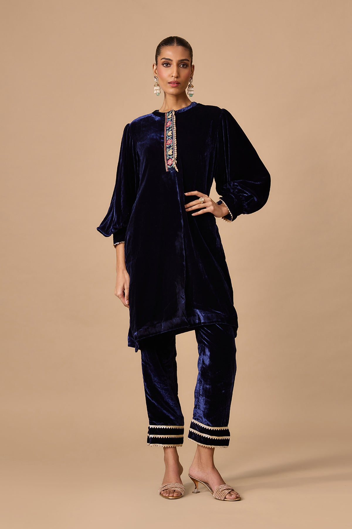 Neck Embroidered Velvet Kurta Paired With A Embroidered Velvet Pant