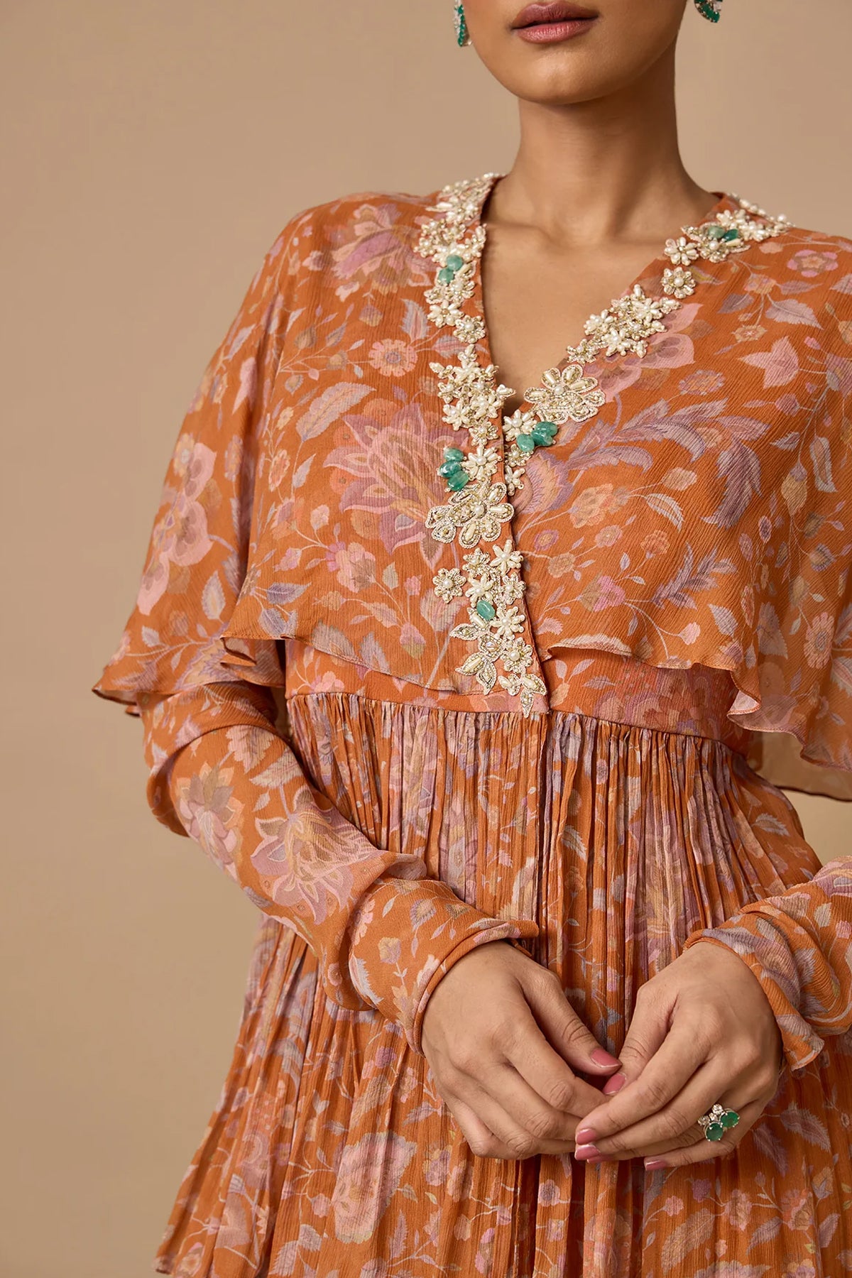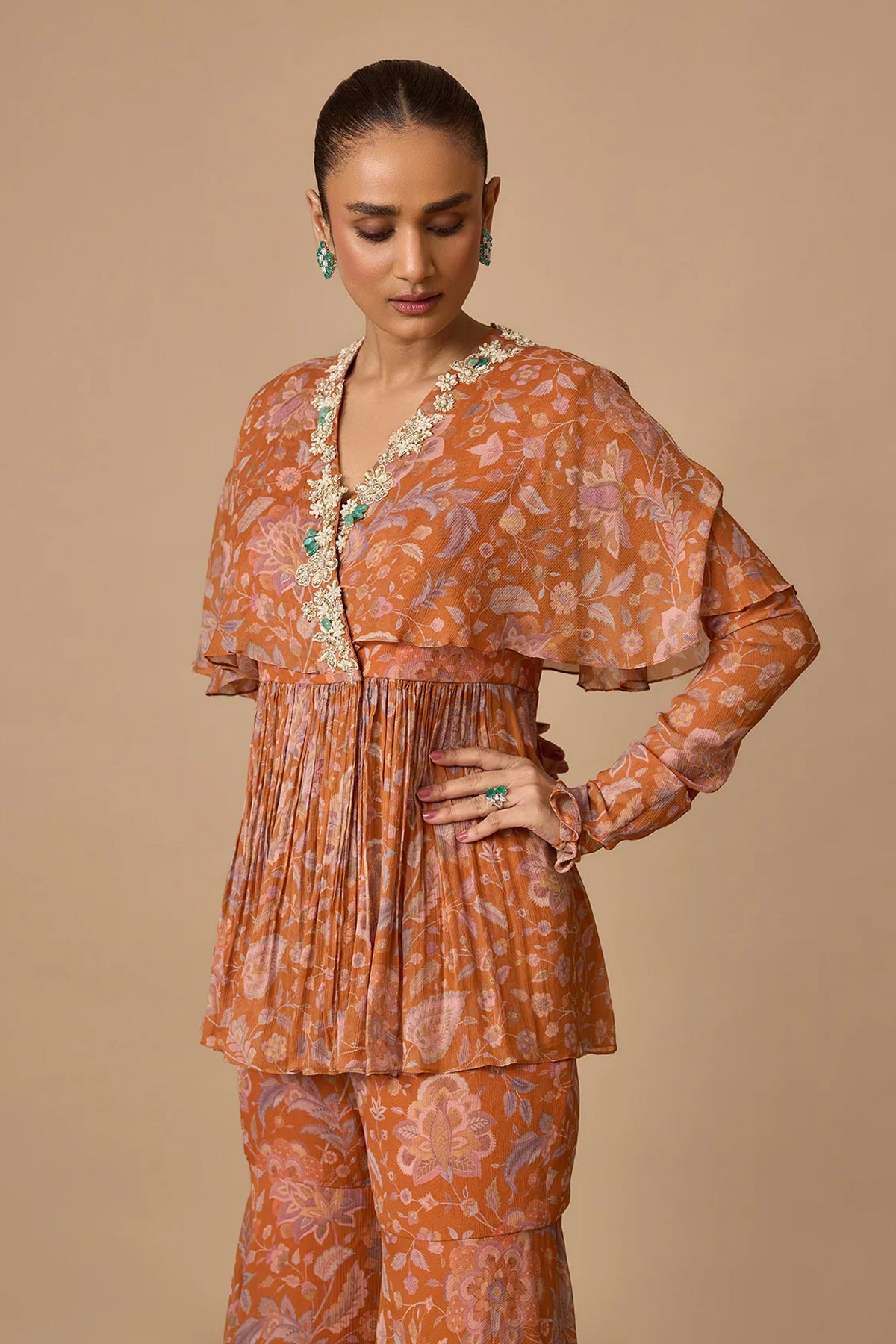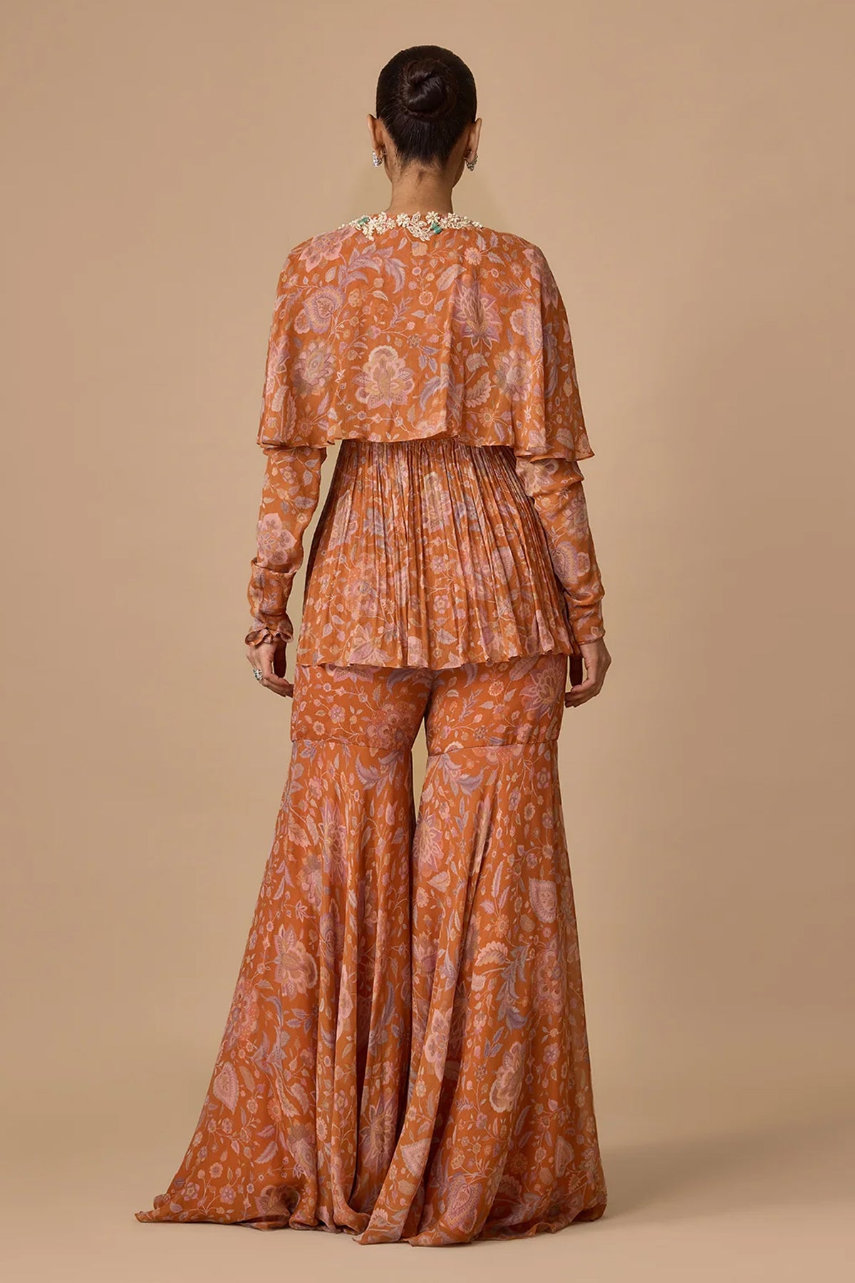 Ivory Printed Chiffon Light Embroidered Cape Style Peplum Paired With a Chiffon Gharara