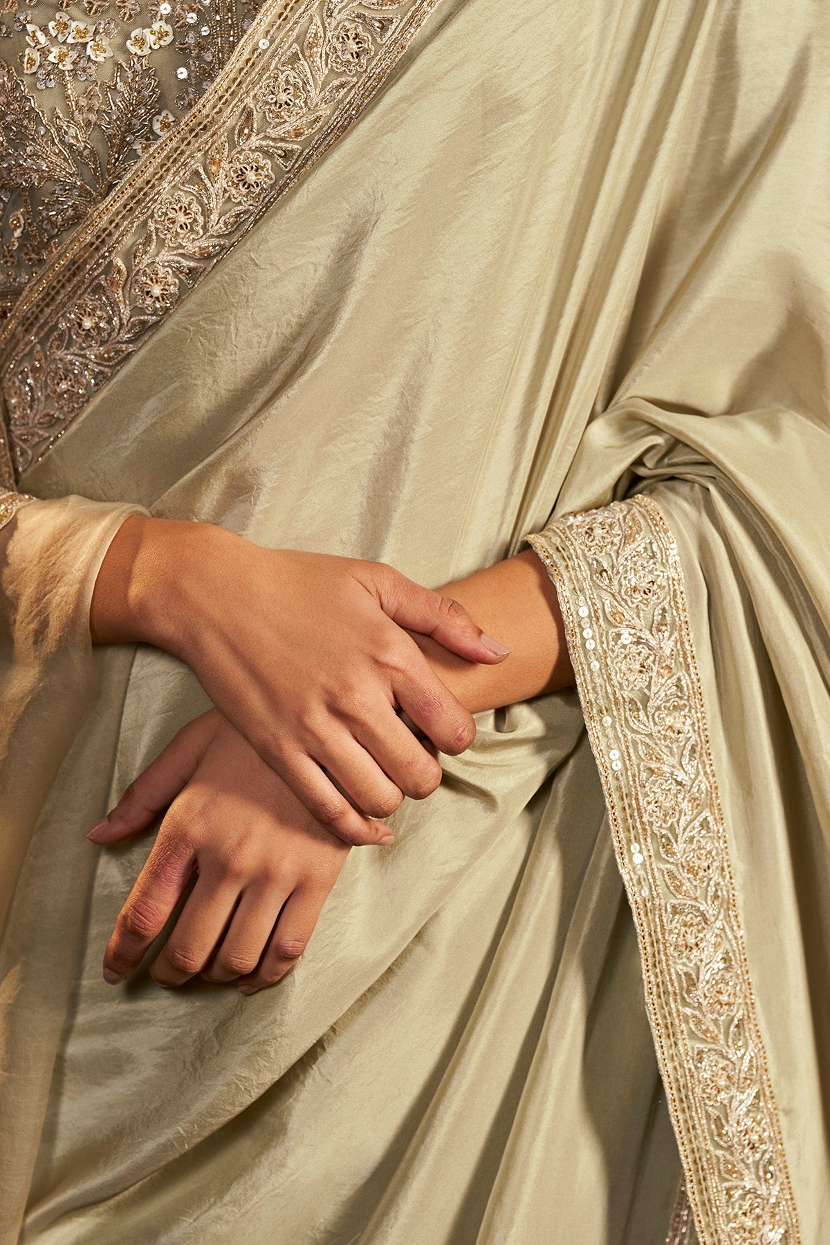 Discover elegance in our Silver Green Persian Inspired Embroidered Saree Set, featuring an intricately embroidered blouse paired with a flat silk saree. The striking color is perfect for day and night occasions, offering versatile styling options to suit your preference. Drape it in a classic Nivi style for a traditional look, or opt for a modern butterfly drape to showcase the exquisite motifs. Elevate your ethnic wardrobe with this timeless ensemble, where tradition meets contemporary charm.