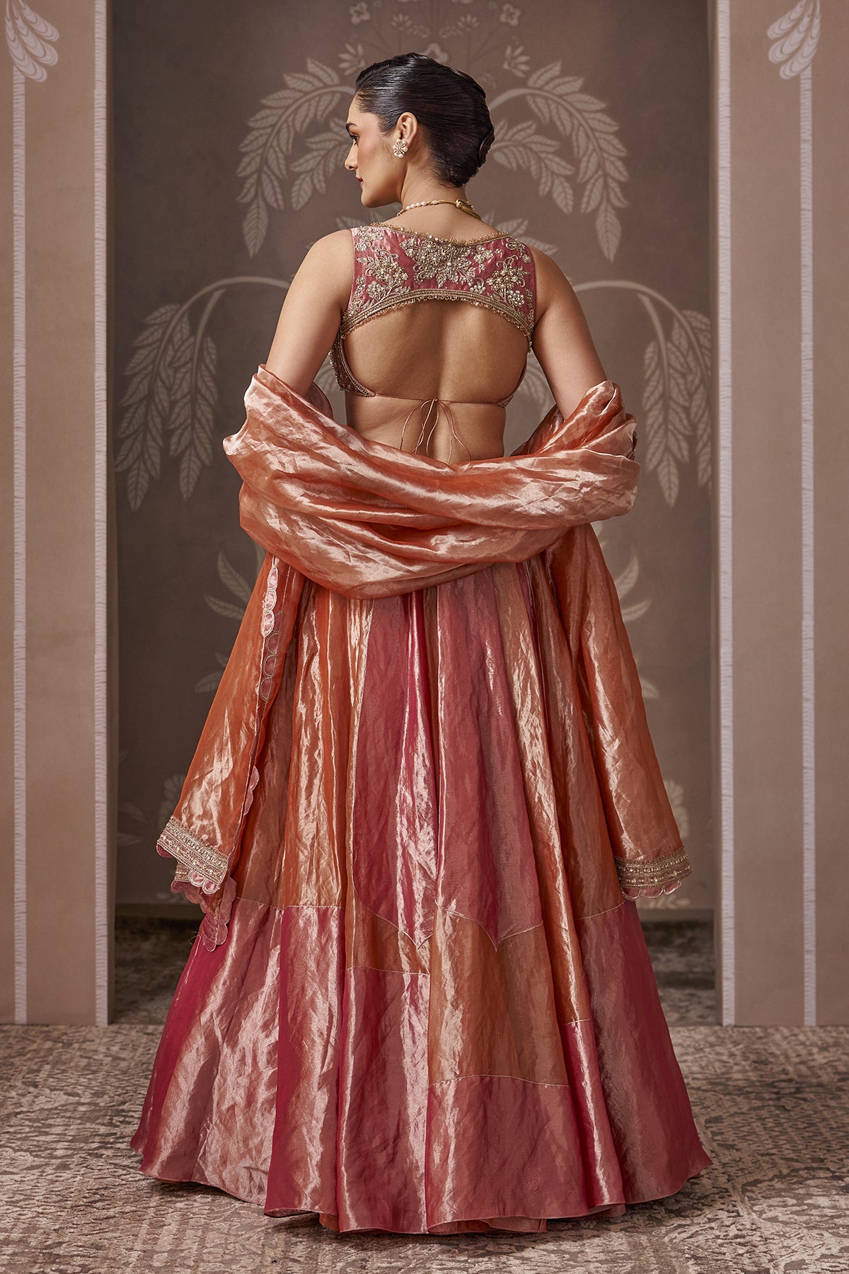 Duo Tissue Embroidered Blouse And Lehenga Paired With Tissue Embroidered Dupatta